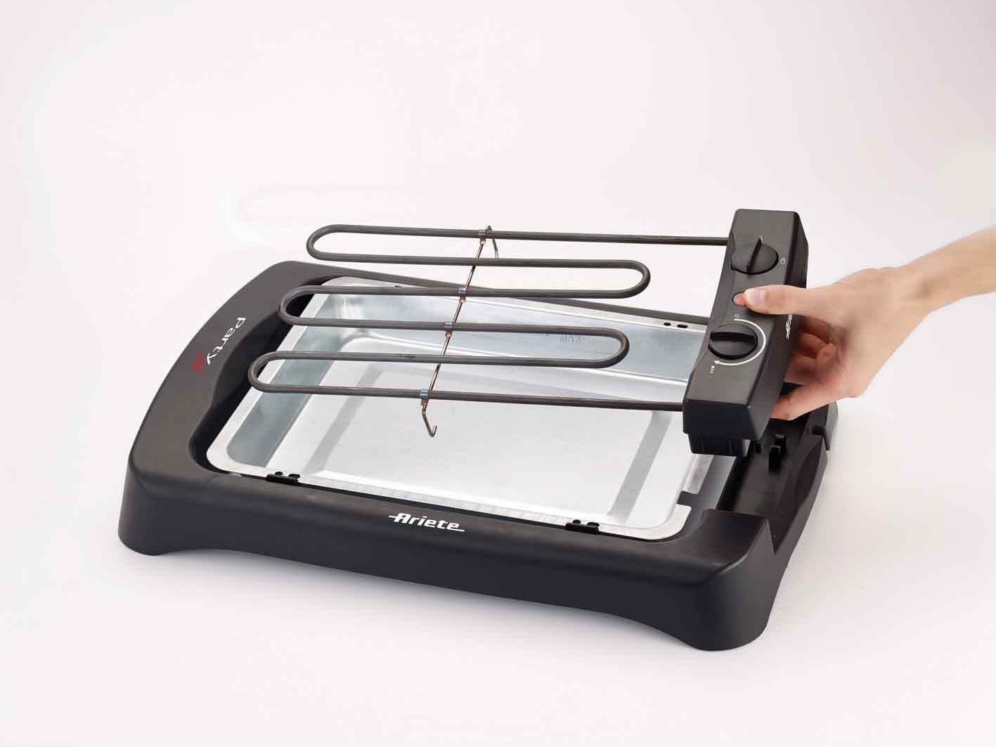 Il nuovo barbecue elettrico leggero, maneggevole e facile da utilizzare per chi ama gli spuntini veloci ma anche cucinare in maniera più leggera carni e verdure alla griglia. Dotato di vassoio raccogli grasso e resistenza removibili, è facile da pulire dopo l'utilizzo. L'altezza regolabile della griglia permette di scegliere il livello di cottura, mentre le comode maniglie lo rendono facile da trasportare e riporre. Party grill è ideale per organizzare in tutta comodità un pranzo in famiglia o una grigliata con amici, per cene gustose e leggere!
