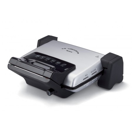 Griglia a contatto pratica ed elegante per cuocere o riscaldare. Piastre grill sospese per adattarsi a cibi di diverso spessore.