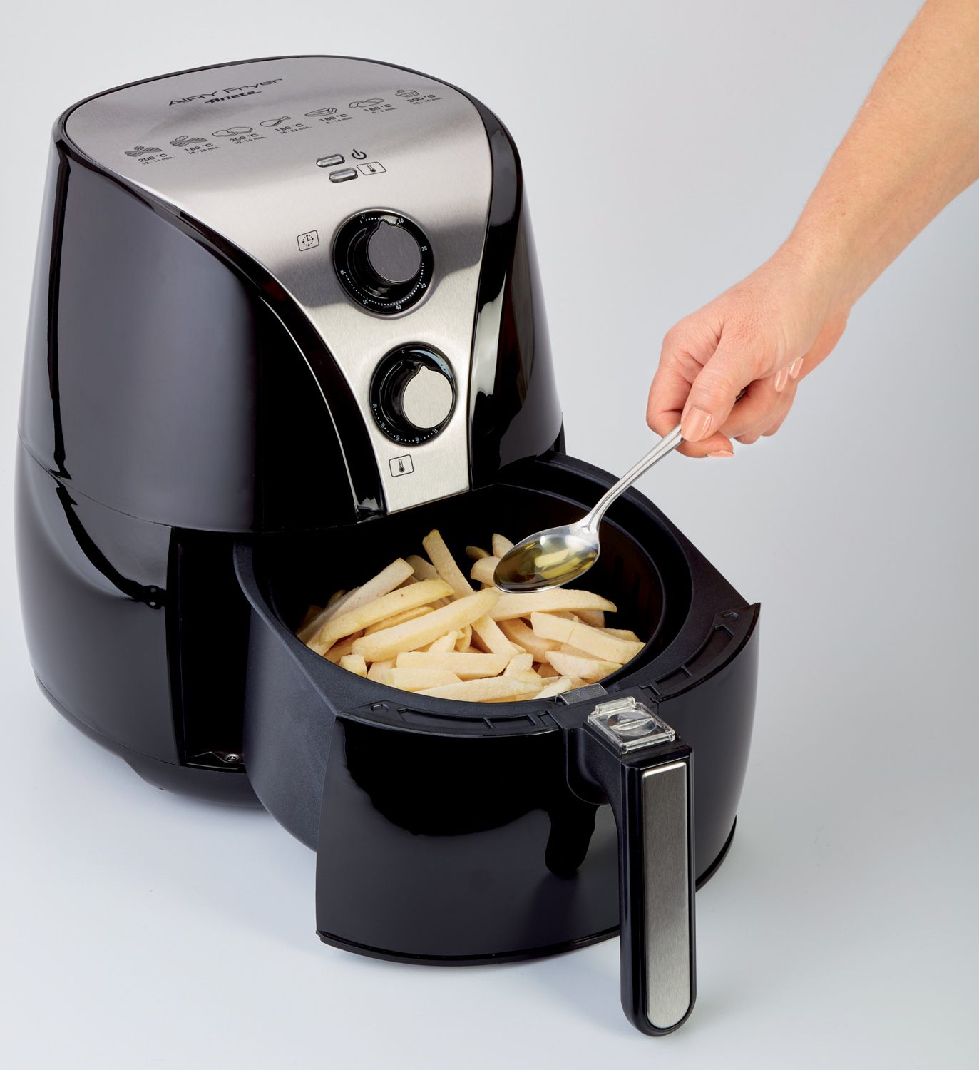 La friggitrice ad aria Airy Fryer è il nuovo elettrodomestico di Ariete attento alla salute: permette infatti di ottenere cibi fritti ma al contempo sani grazie ad una rapida ed uniforme circolazione dell’aria calda all’interno del cestello. Carne, pesce o verdure saranno croccanti e gustosi come quelli preparati in una normale friggitrice, ma con E per chi invece non è amante della frittura e vuole utilizzare anche altri metodi di cottura, con Airy Fryer è possibile anche arrostire, cuocere e grigliare! Finalmente è possibile combinare sapore e leggerezza per una cucina sana e gustosa!