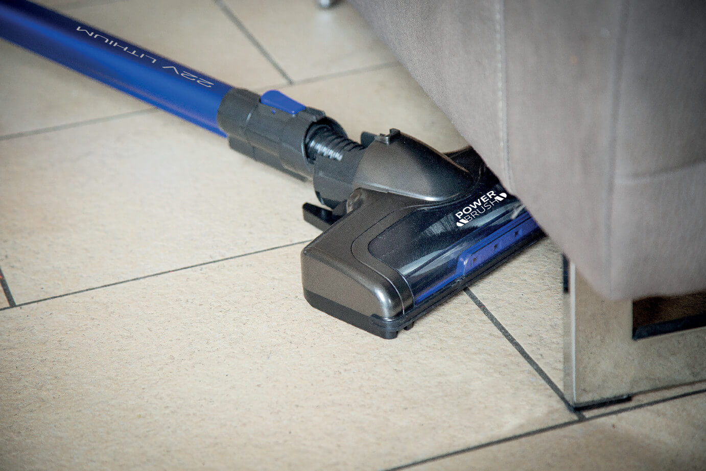 Utilizza 22V Lithium in modalità aspirabriciole con l’accessorio per tessuti per ravvivare e aspirare in modo efficace divani e poltrone.