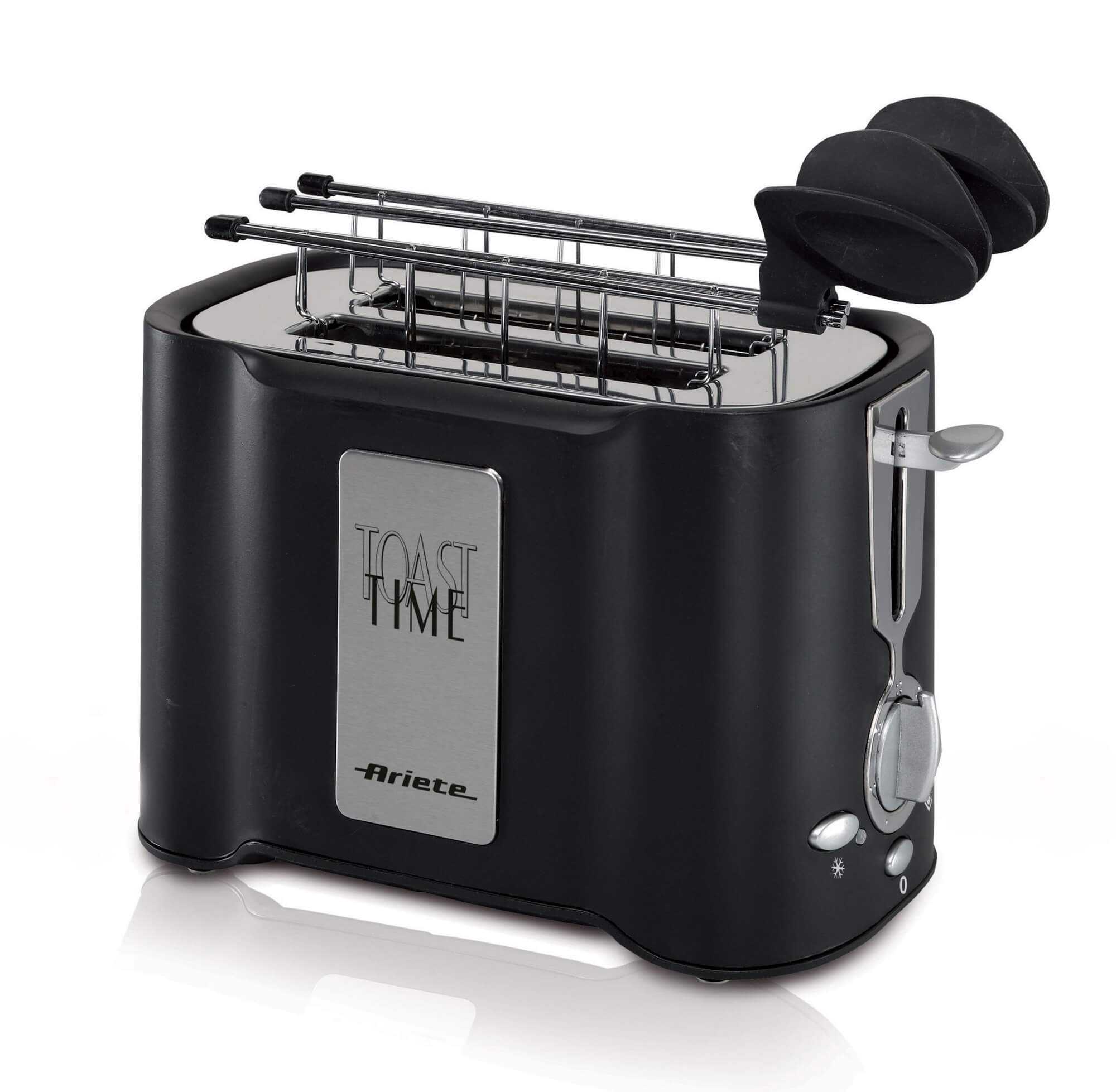Tostapane dalle forme morbide ed eleganti, con pratica funzione di scongelamento, pinze in acciaio inox, riscaldamento ed espulsione automatica delle fette.