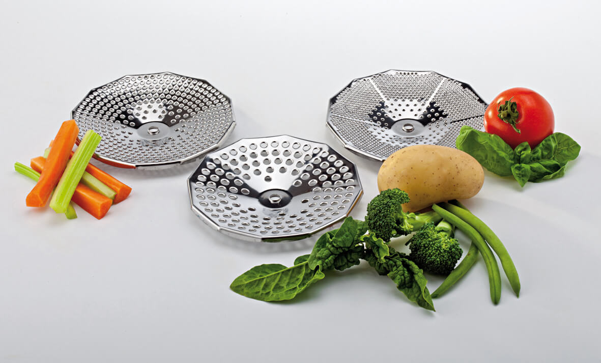 Pratico passaverdure elettrico azionabile con un semplice pulsante, per ottenere passati gustosi e digeribili. È l’unico elettrdomestico in grado di separare le bucce e i semi dalla polpa, senza aggiungere aria ai cibi passati. Leggero e di ridotte dimensioni, resiste agli urti e al calore ed è facilmente smontabile. Recipiente, pala e dischi sono lavabili anche in lavastoviglie. 3 i dischi: fori piccoli, medi e grandi, adattabile a qualsiasi recipiente, pala in acciaio inox con movimento alternato rotatorio.