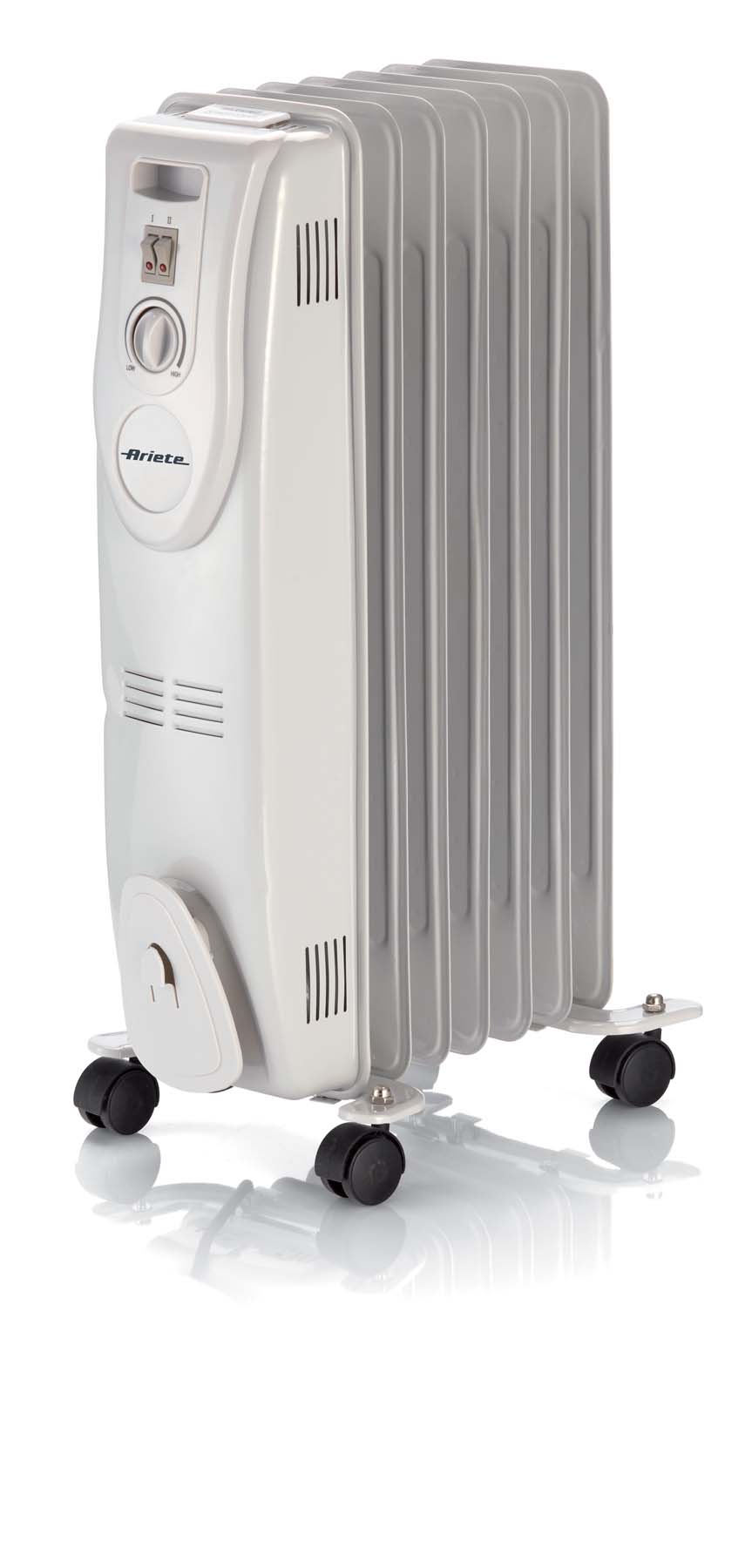 Radiatore elettrico a olio, efficiente per un calore uniforme di lunga durata. Dotato di 7 elementi riscaldanti, tre livelli di potenza e di un termostato regolabile. E’ facilmente trasportabile grazie alla comoda maniglia e alle ruote sulla base.