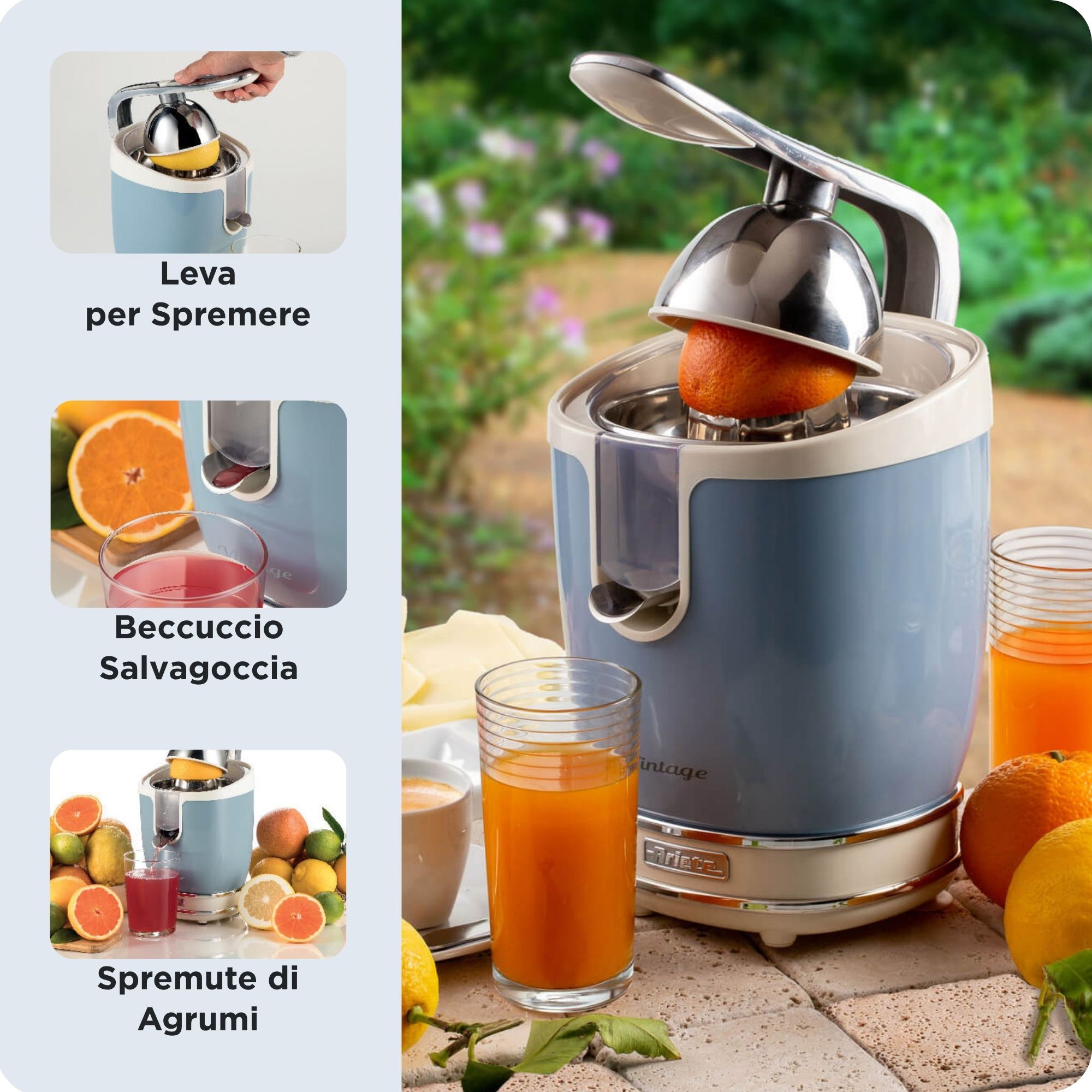 A freshly squeezed orange juice in the morning guarantees you a unique charge of energy, vitamins and mineral salts, better still if authentic and prepared at home with the best oranges and Ariete’s Vintage professional juicer.