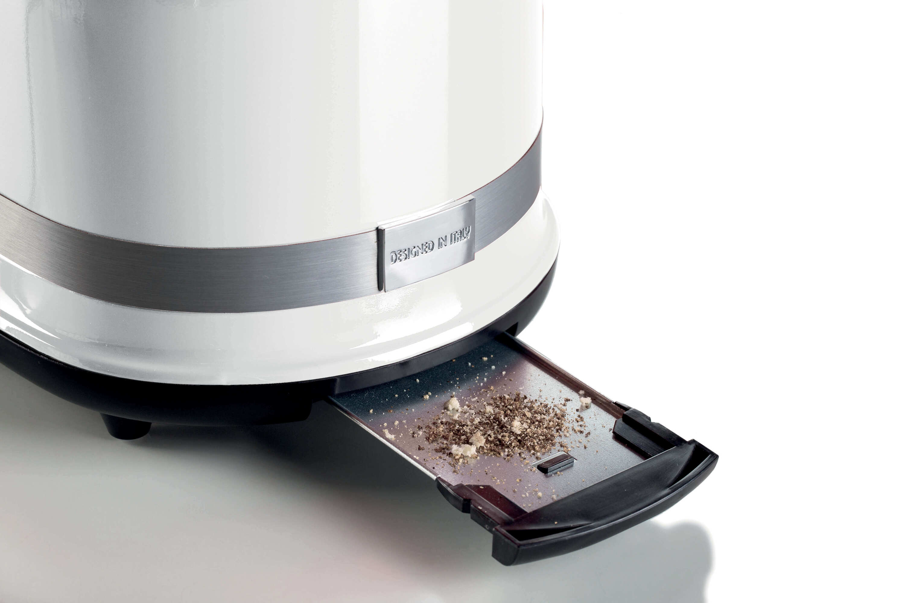 The Moderna electric toaster by Ariete is designed to perfectly toast bread or stuffed sandwiches. With this 2-slice toaster, you can toast two slices of bread simultaneously and select from 6 different browning levels, allowing you to achieve your preferred level of crispiness. It also features 3 functions: cooking, heating, and defrosting. The Moderna bread toaster seamlessly combines functionality with the unique Italian design of Ariete’s Moderna line. Discover the full collection and elevate your kitchen decor starting with these essential small appliances!