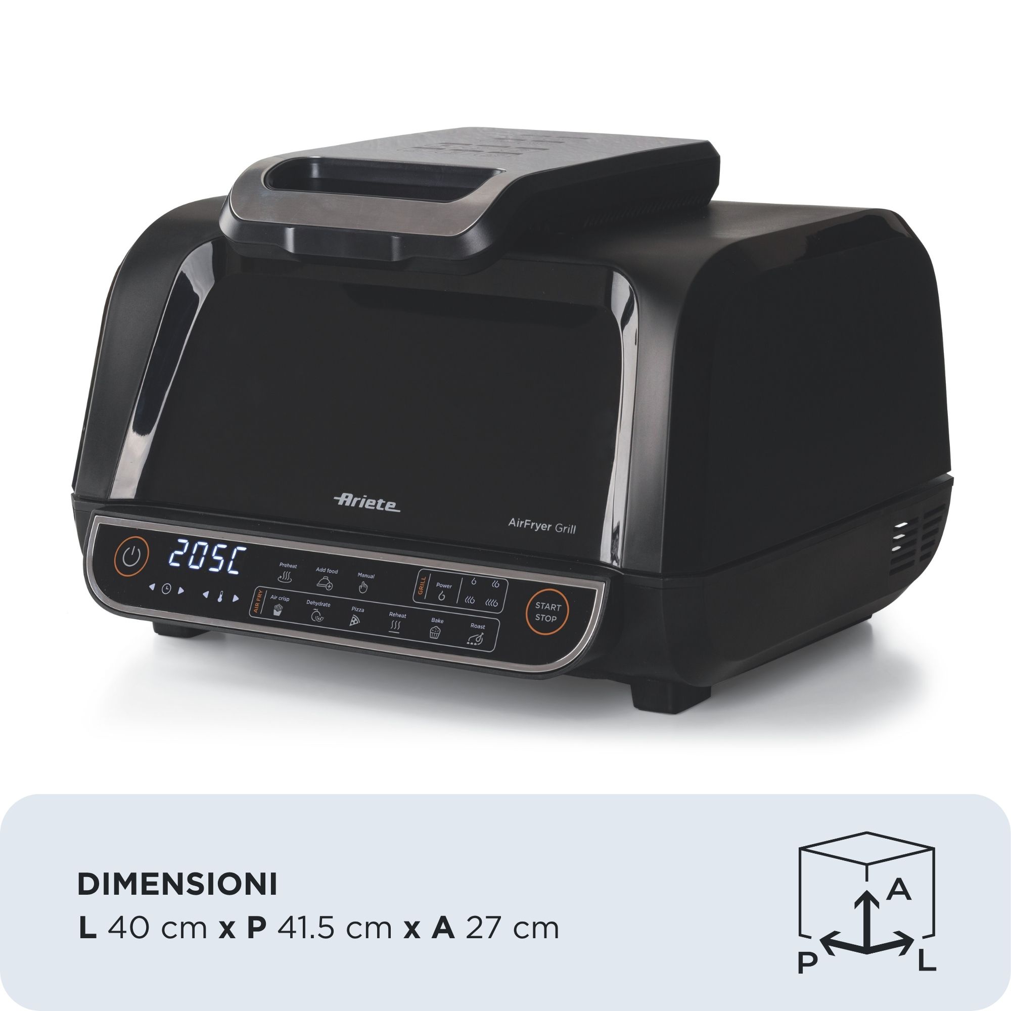 | Accessori | griglia antiaderente, cestello friggitrice forato, contenitore di cottura e spazzolino per una pulizia facile e completa |