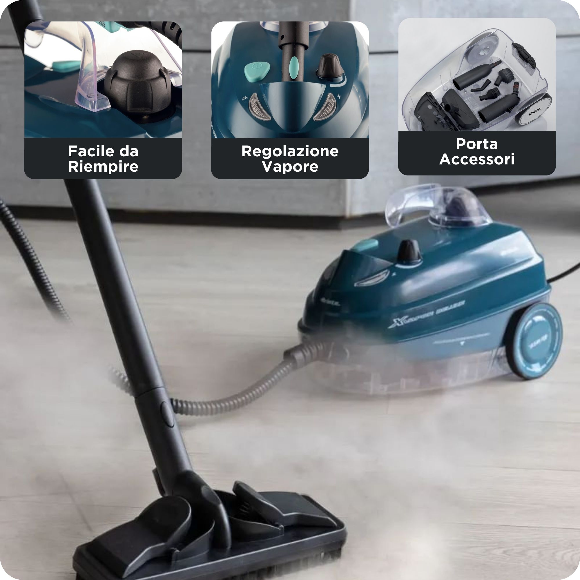Sogni una casa non solo pulita, ma veramente igienizzata, senza ricorrere a prodotti chimici aggressivi? XVapor Deluxe si affida esclusivamente alla straordinaria efficacia del vapore a 100°C per ... [Continua]