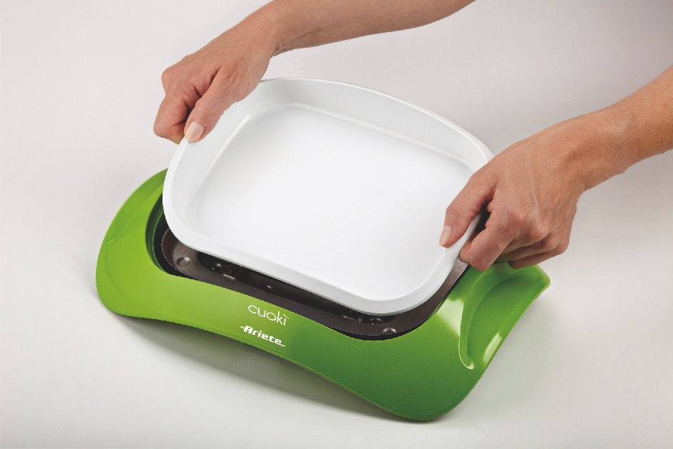 Cuokì is the new table portable grill equipped with the innovative ceramic grill for a quick and healthy cooking. Thanks to removable power cord and practical handles it can be brought to the table as a colorful and nice tray. The ceramic plate, meant to grant a perfect cooking maintaining the food’s properties, is removable and can be easily cleaned.