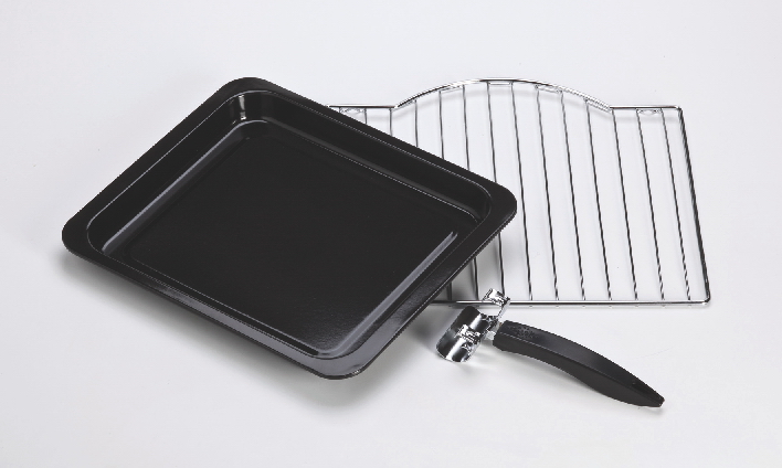 В комплекте: решетка для гриля, противень для выпекания с ручкой, поддон для крошек.