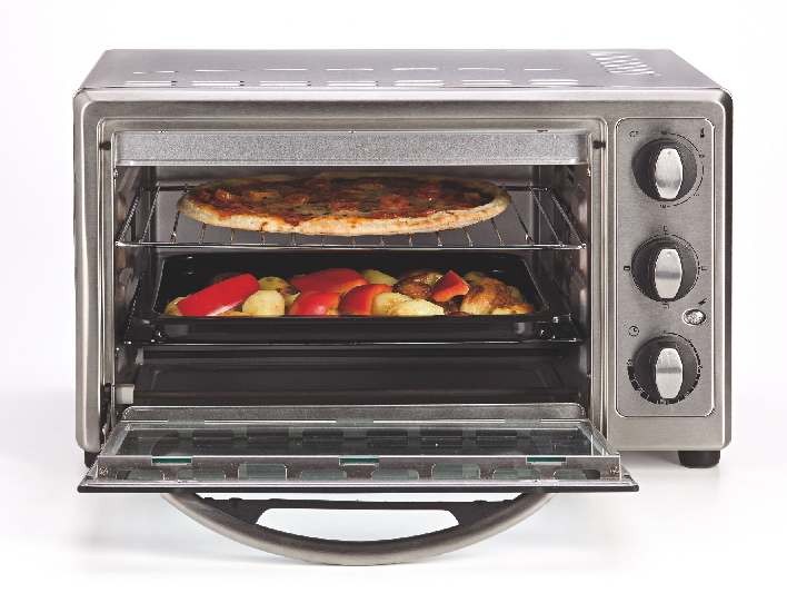 В комплекте: решетка для гриля, противень для выпекания с ручкой, поддон для крошек.