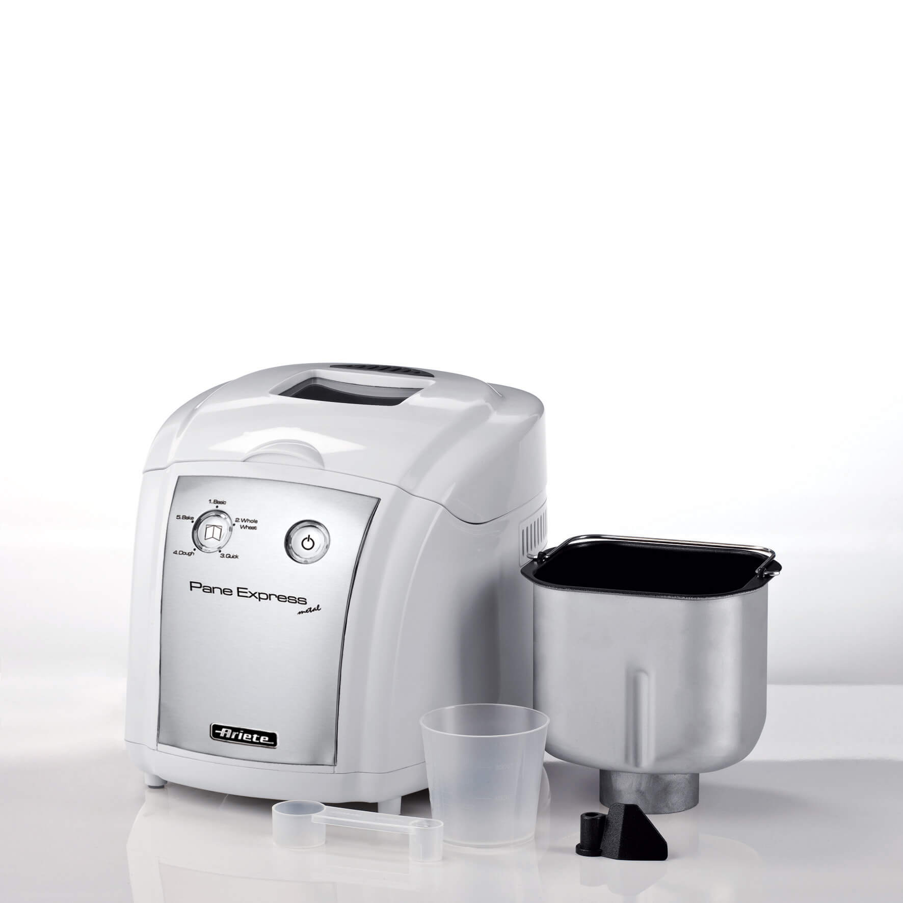 The new small and compact Pane Express Metal bread maker is ideal for loaves from 350 g up to 500 g. Just enter the required programme, put in the ingredients and Pane Express will do the rest, mixing, proving and baking. Also ideal for use with gluten-free flour and for making excellent jams and preserves.