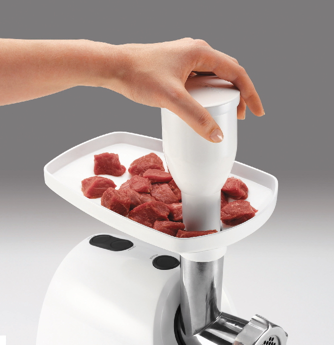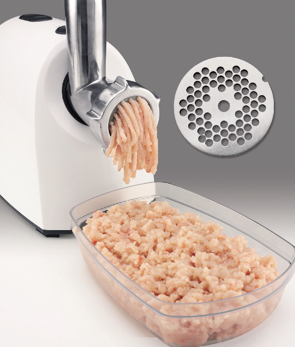 Meat mincer with metal screw, 3 discs, 2 sausage adapters and 1 kebbe adapter.